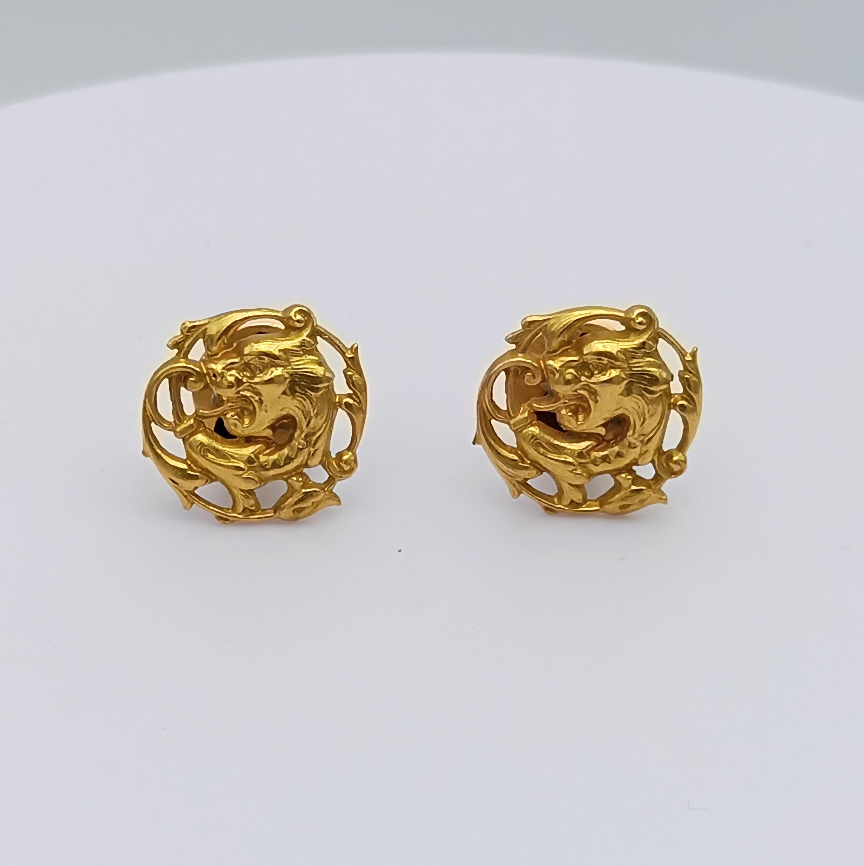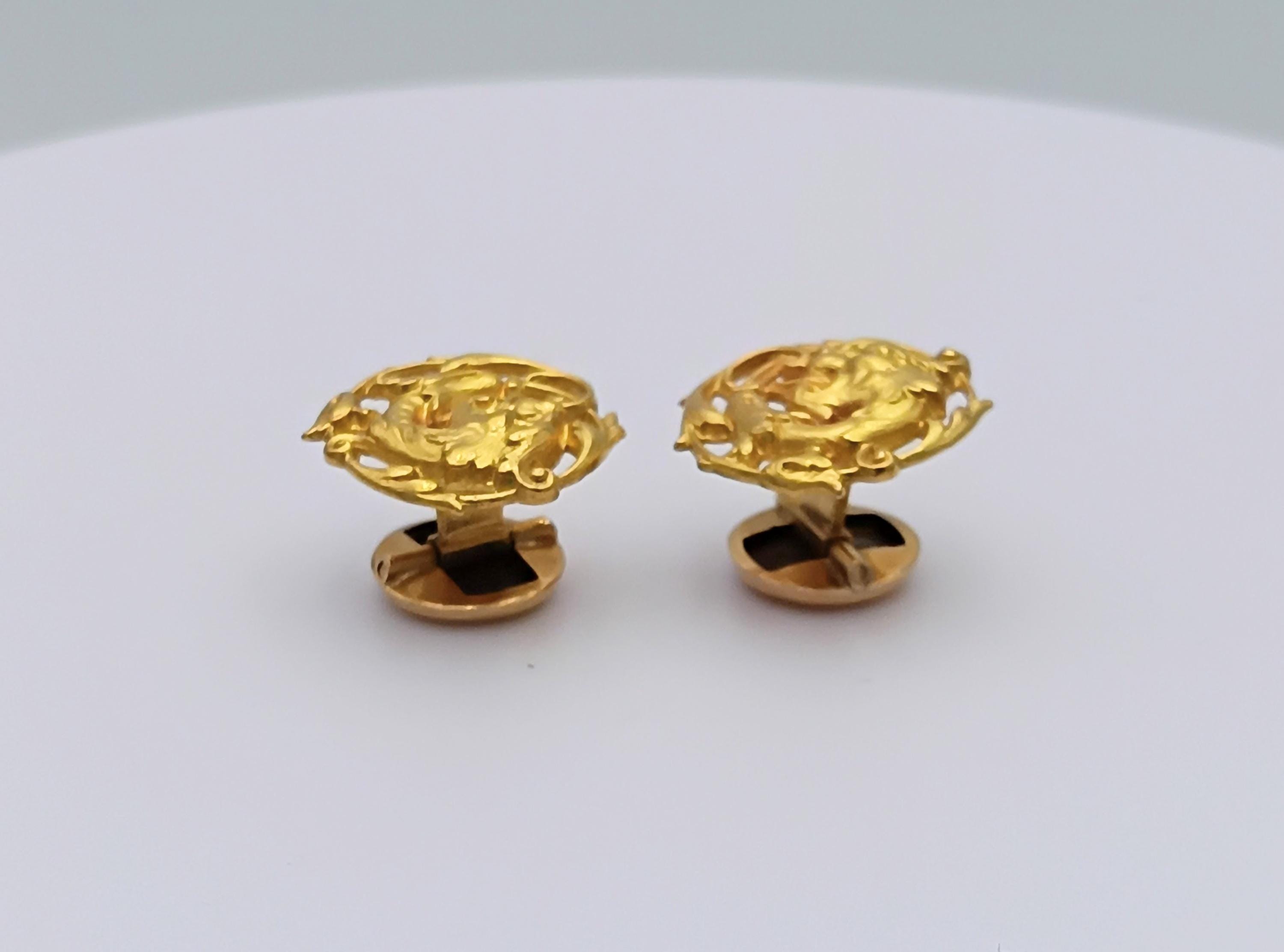 Superb 18K solid gold cufflinks of Art nouveau inspiration figuring a chimera