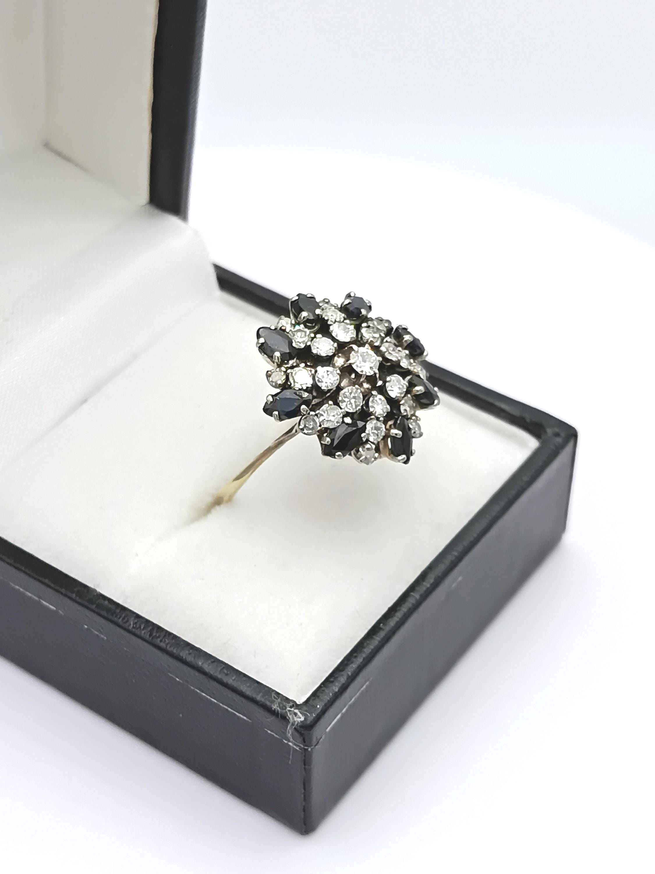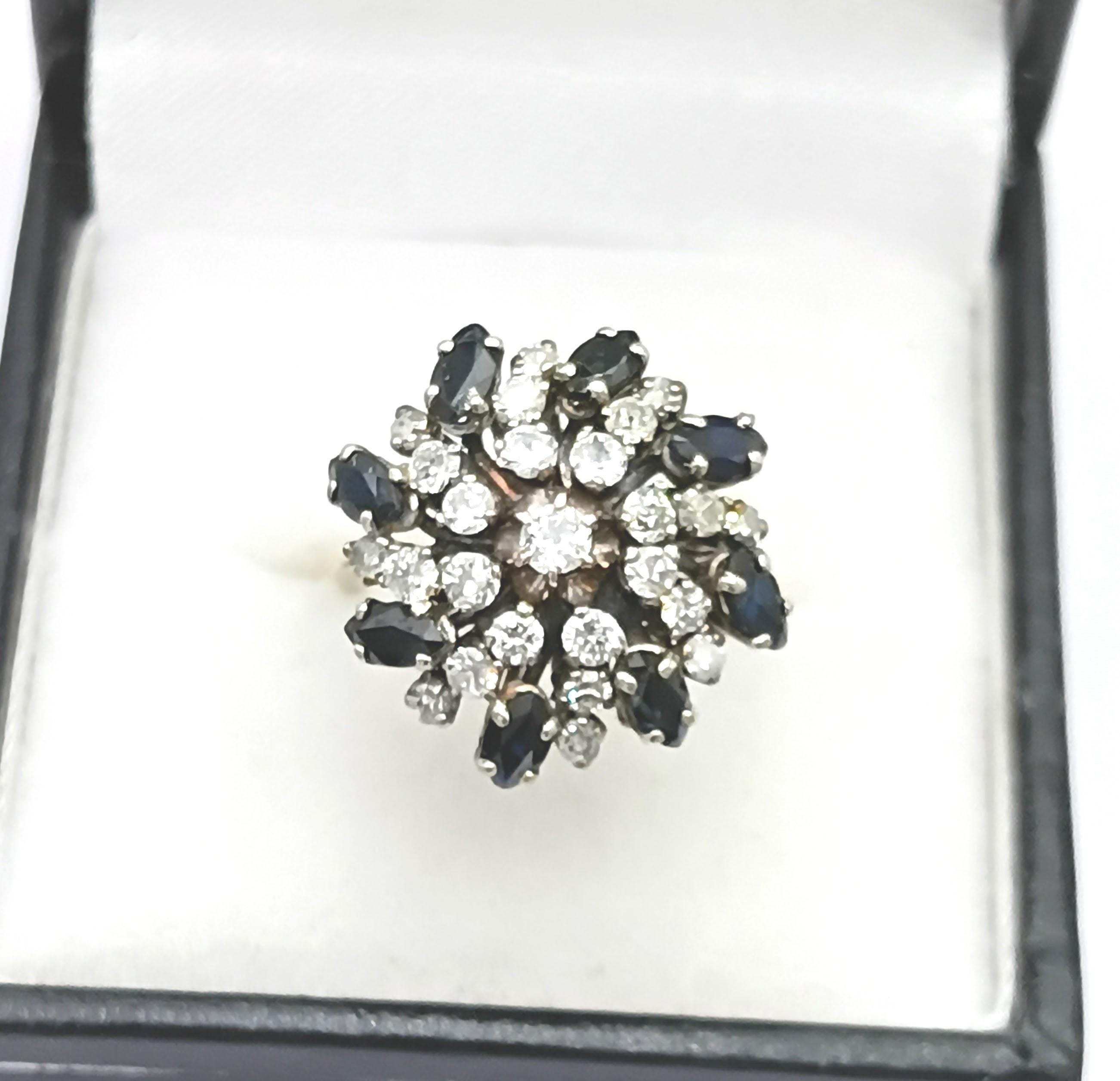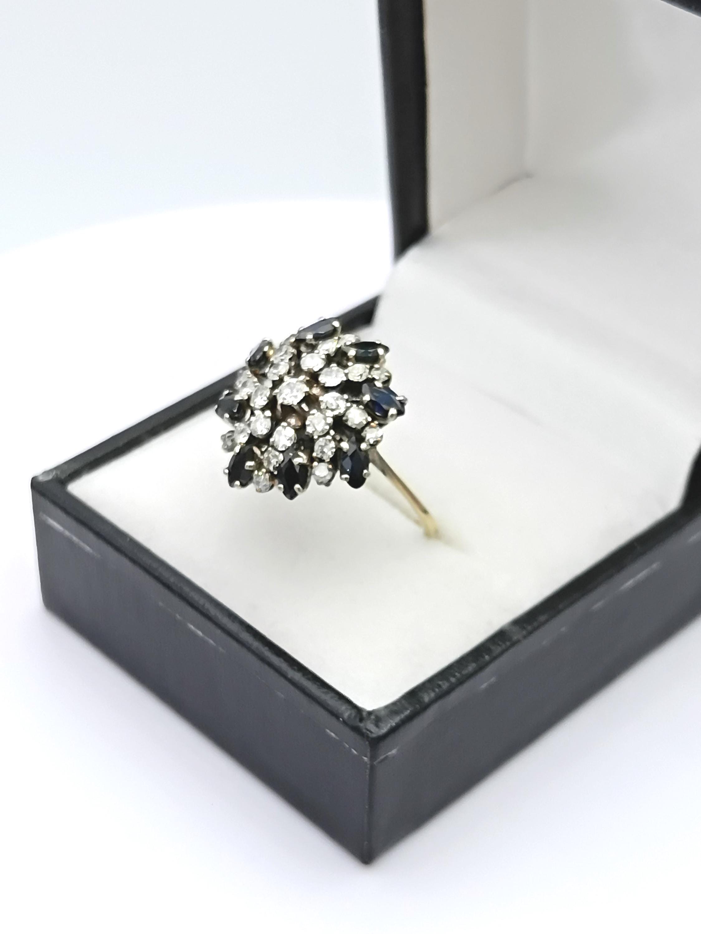 Large vintage flower ring set with sapphire and diamond in 14K gold