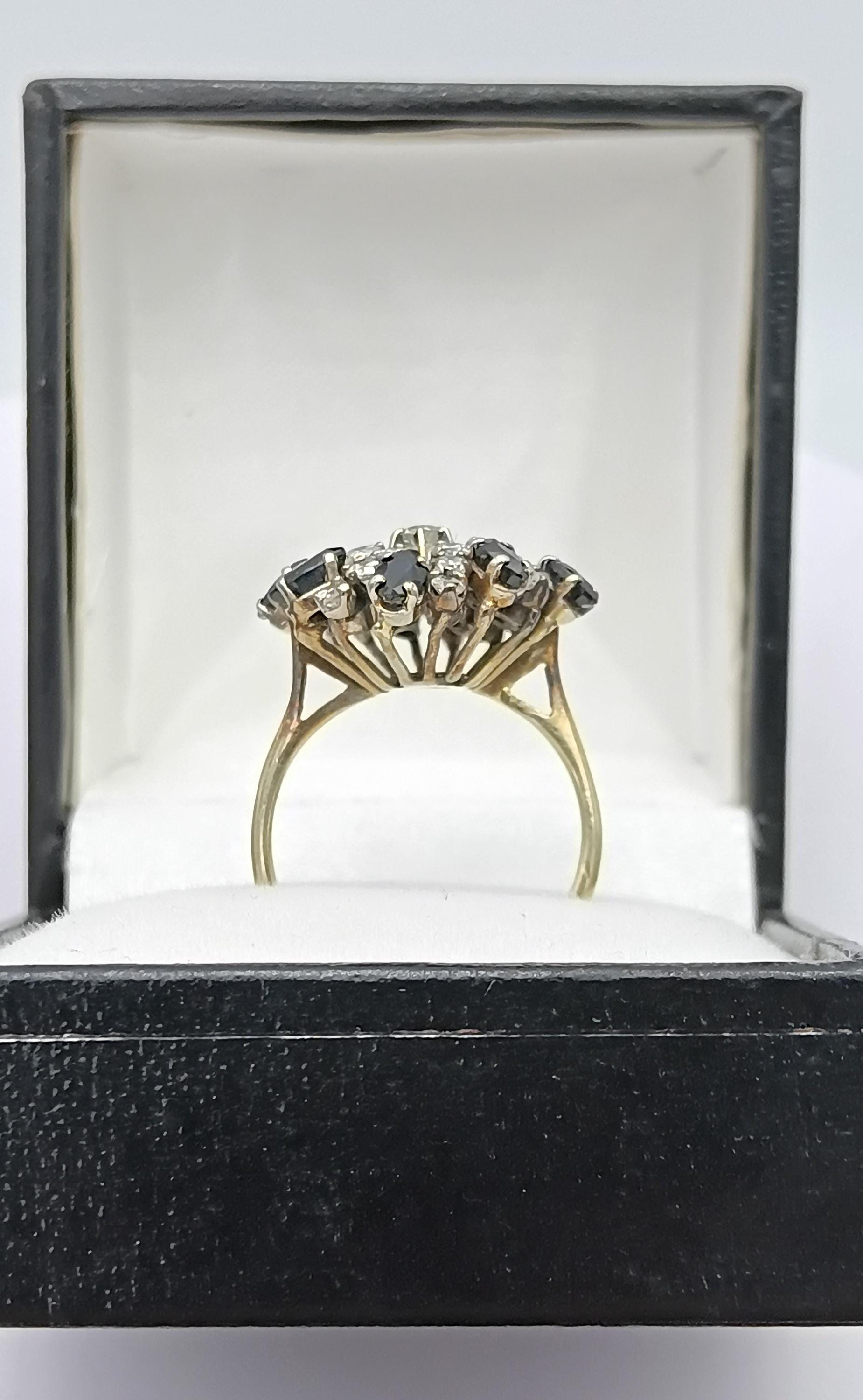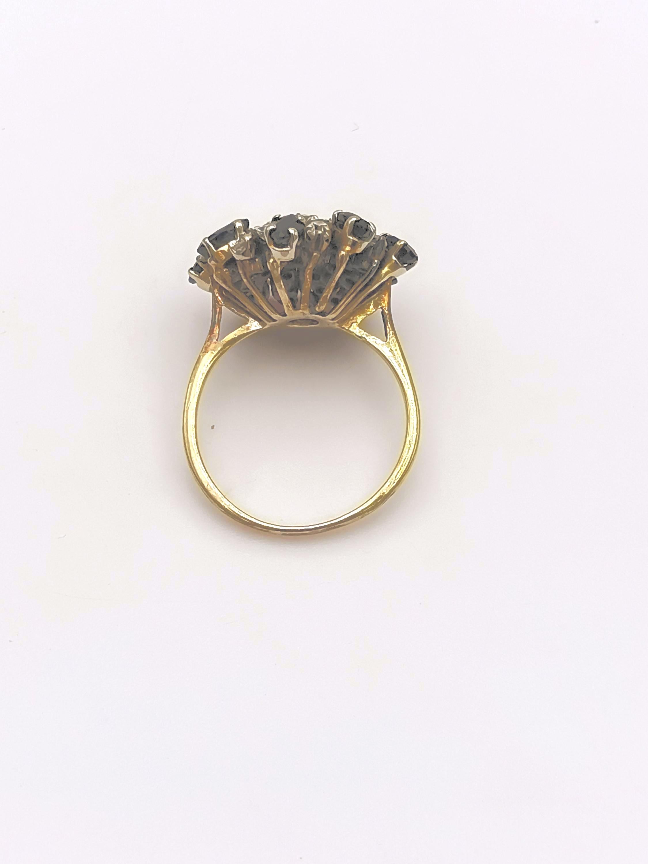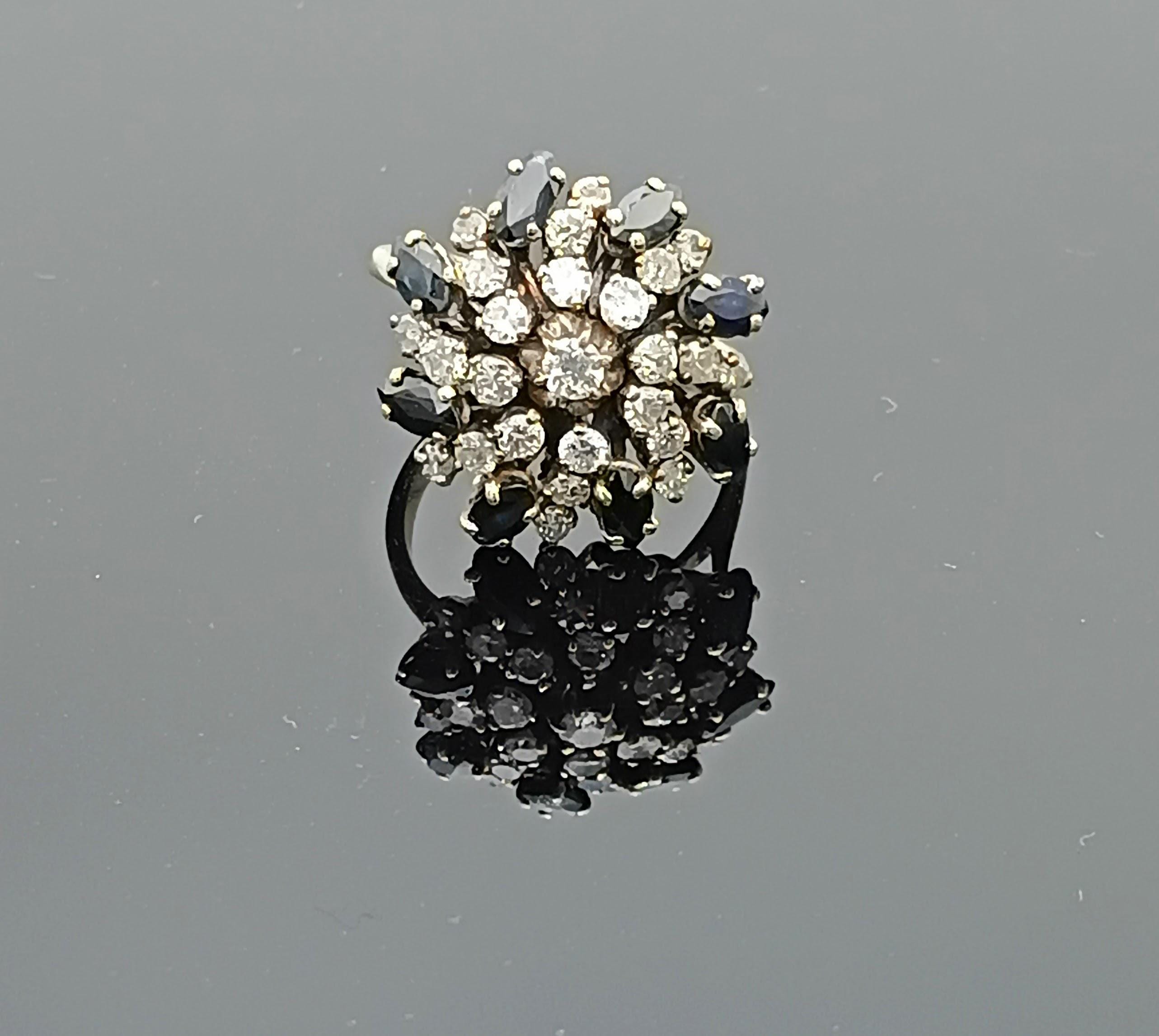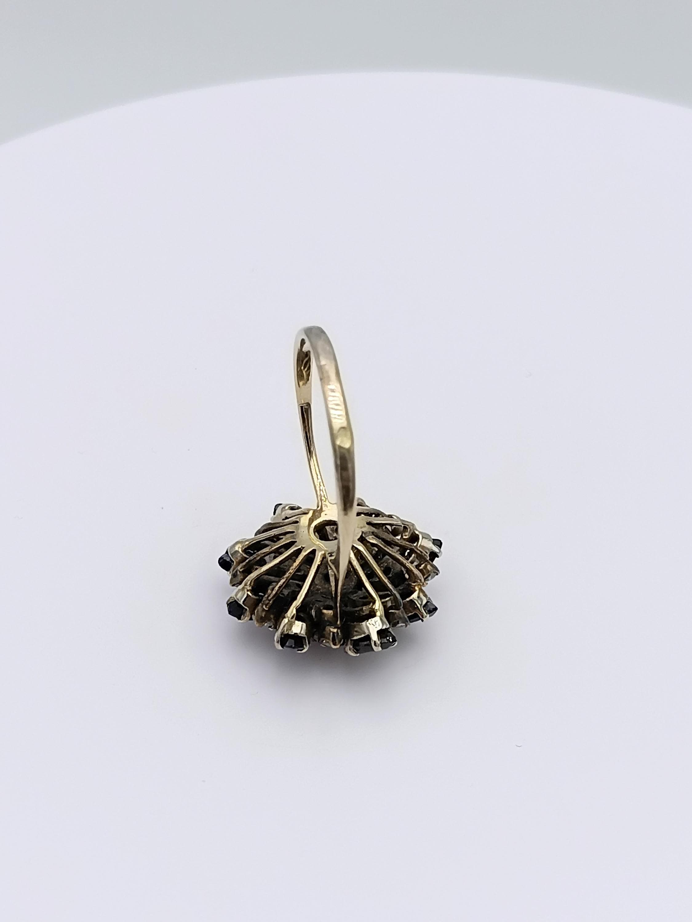 Large vintage flower ring set with sapphire and diamond in 14K gold