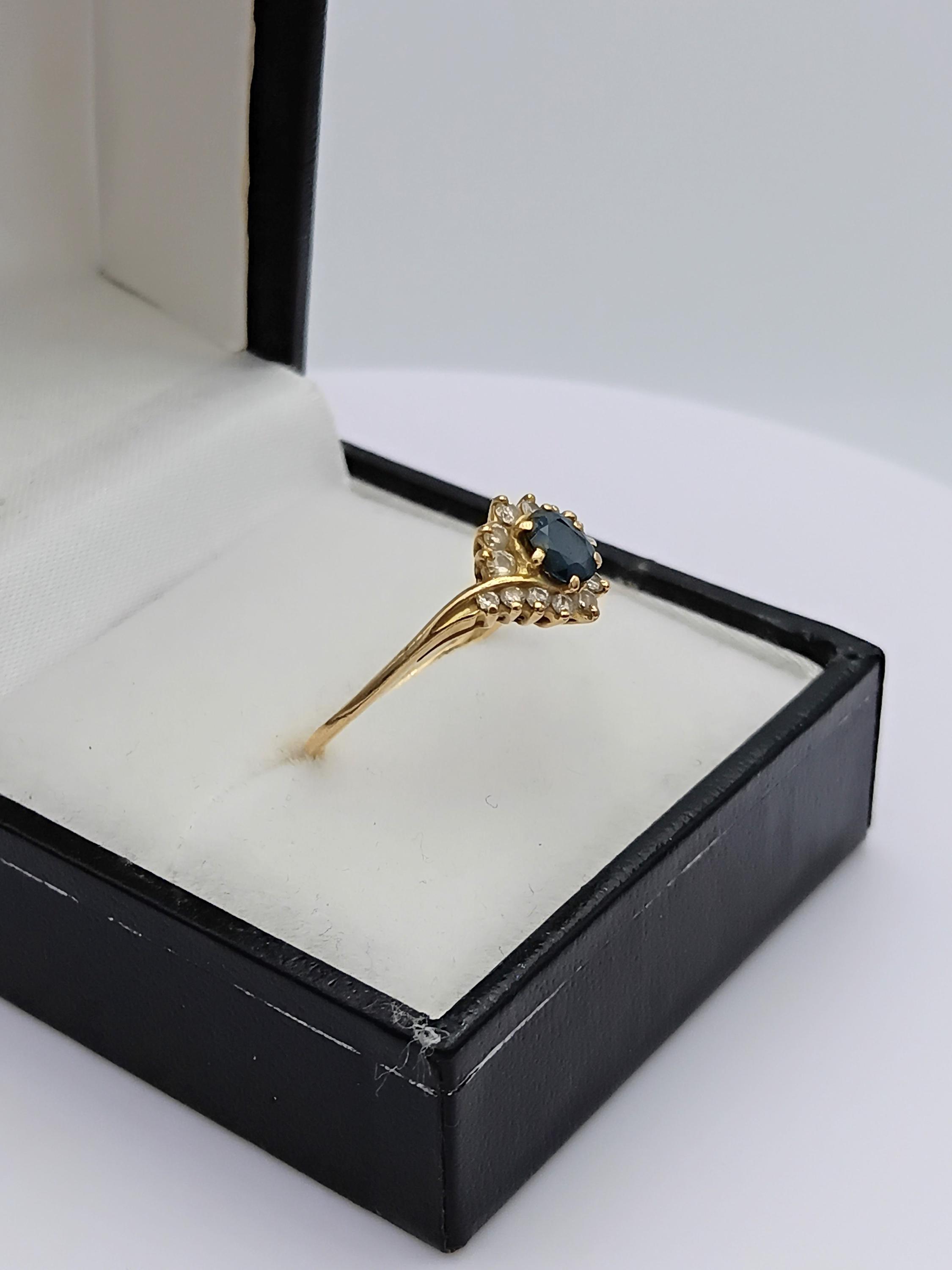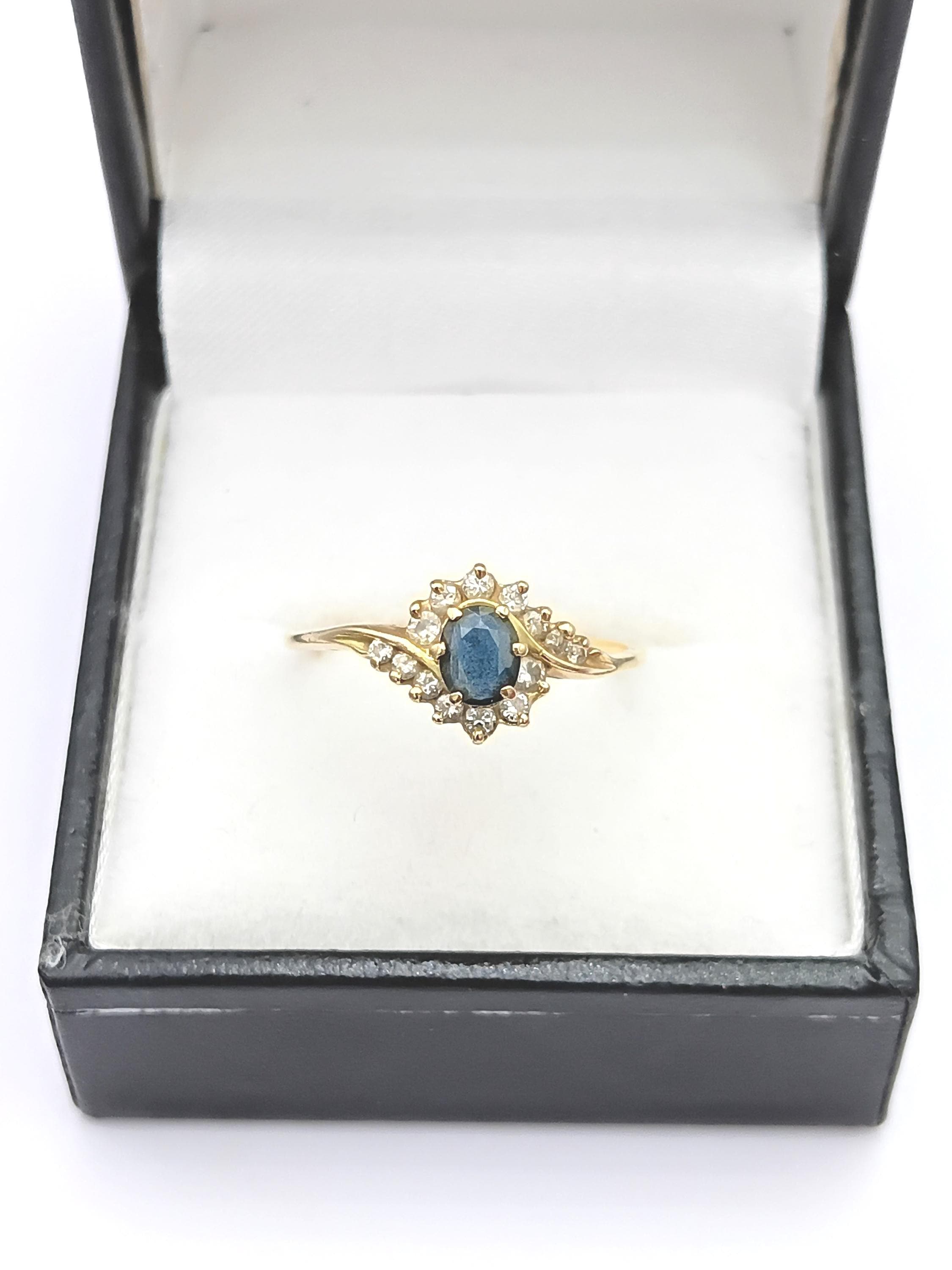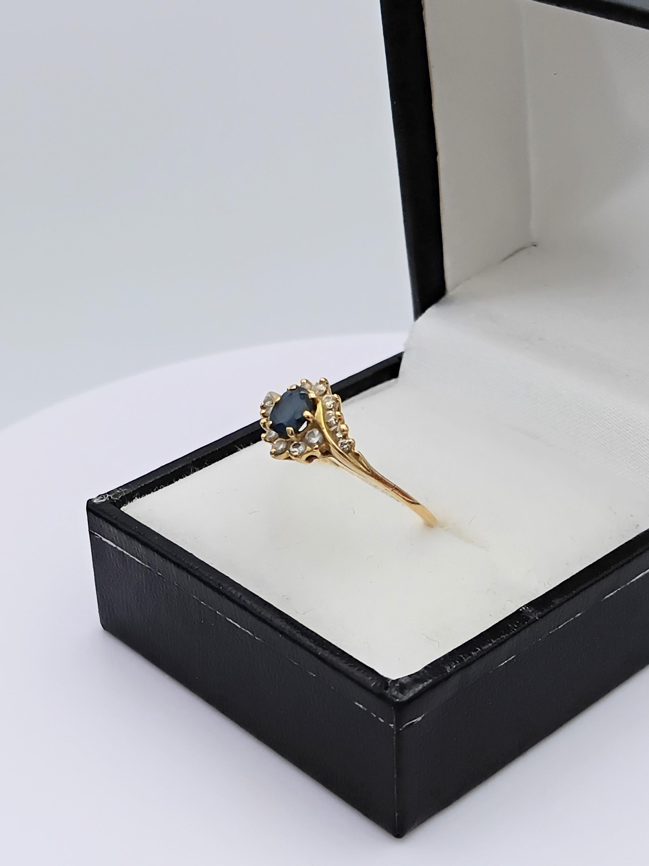 Vintage 18K gold sapphire and diamond swirl ring